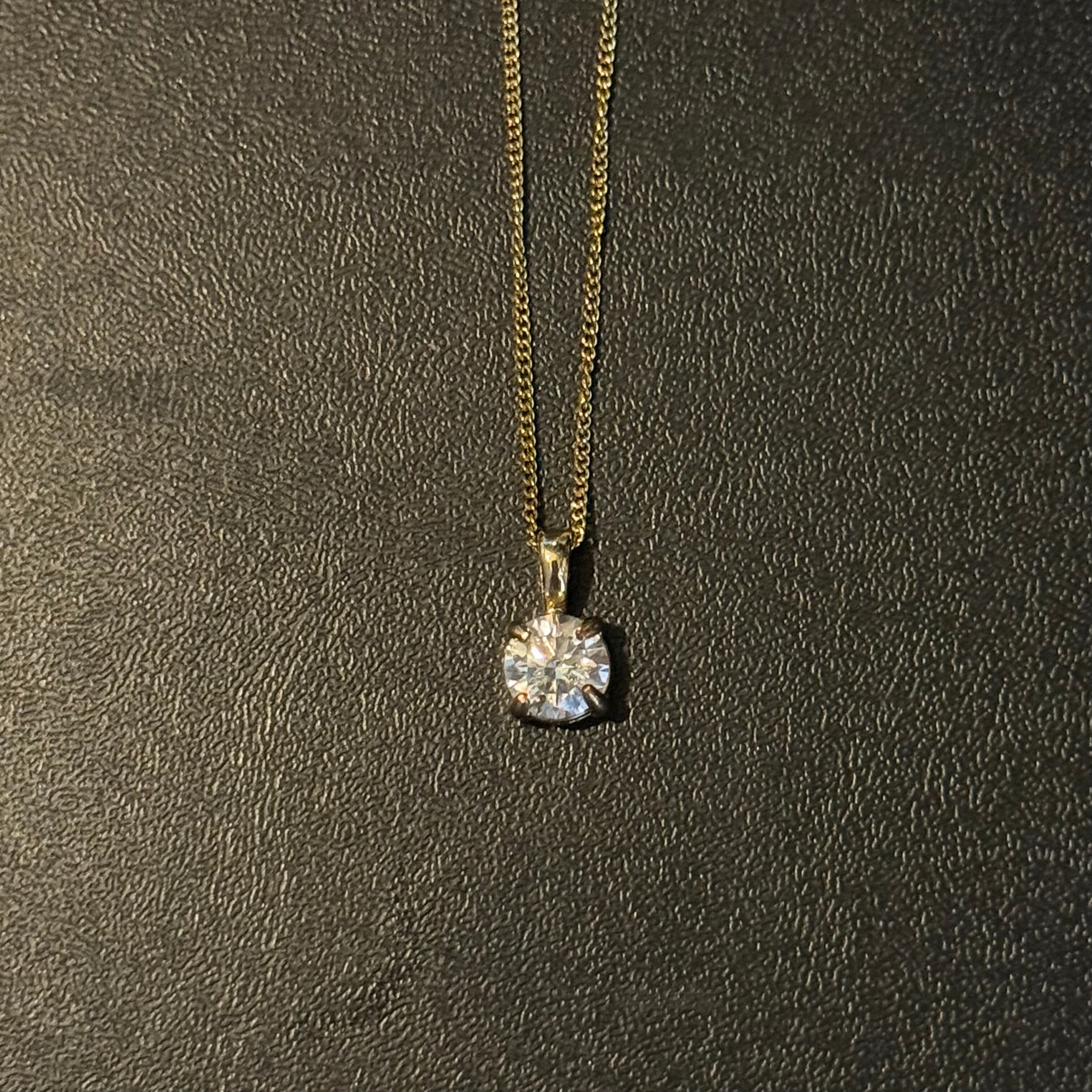 1.0カラットのモアサナイトが、ゴールドの光と溶け合いながら