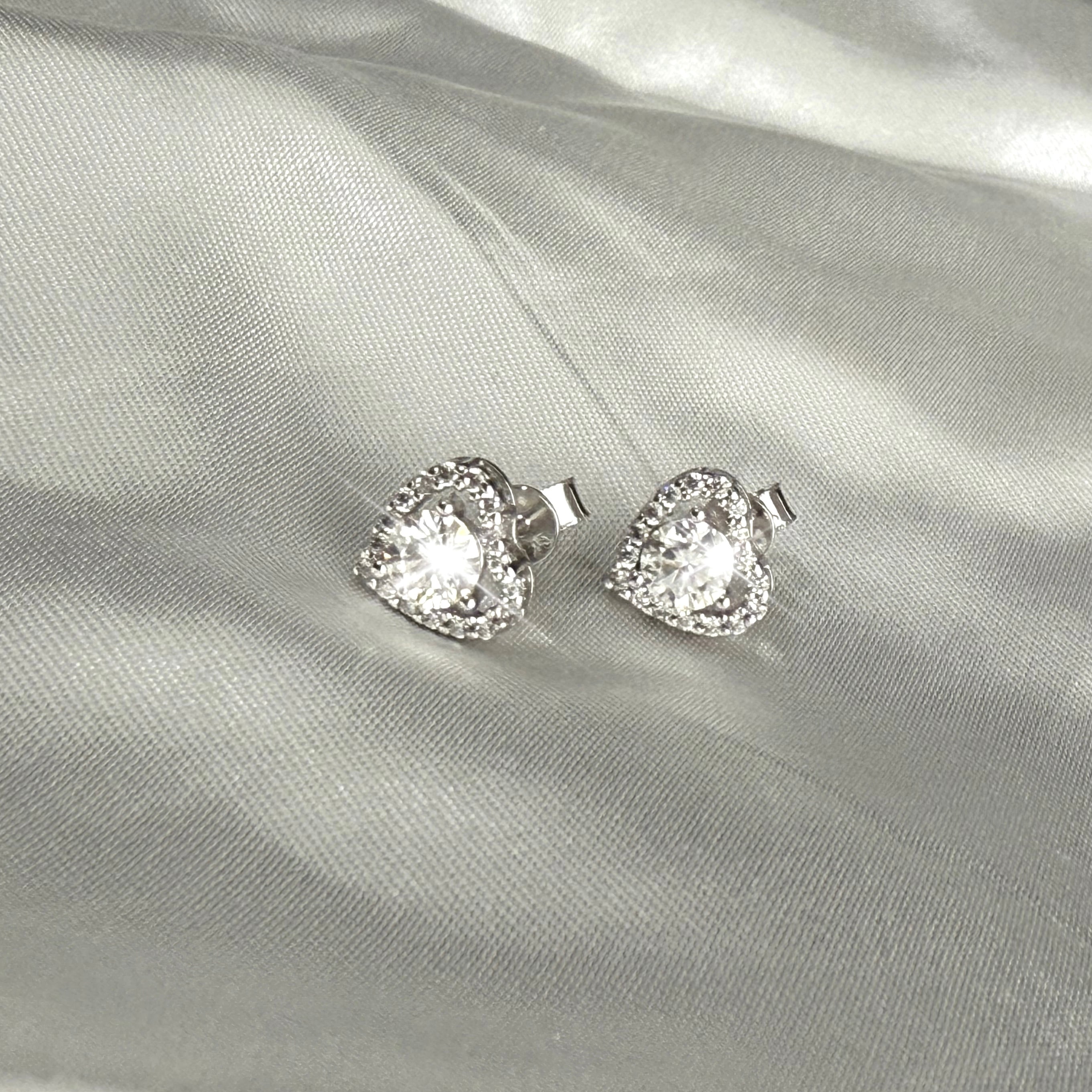 大粒のハート型にカットされたモアサナイトが、美しく光を反射する限定ピアスです。