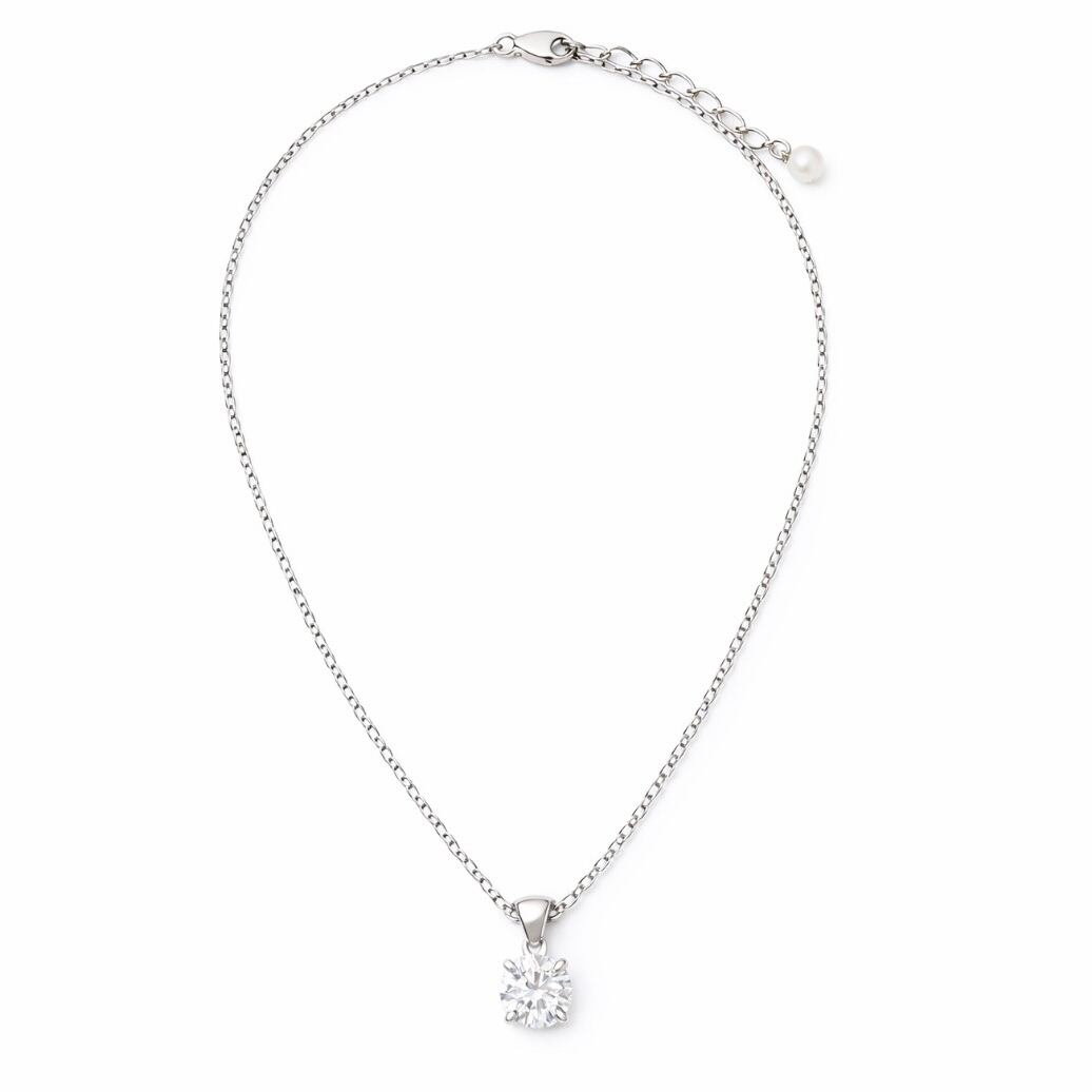 1.0カラット(6 mm)Dカラーのモアサナイトが、シルバーチェーンと出会い、静かに輝きます。