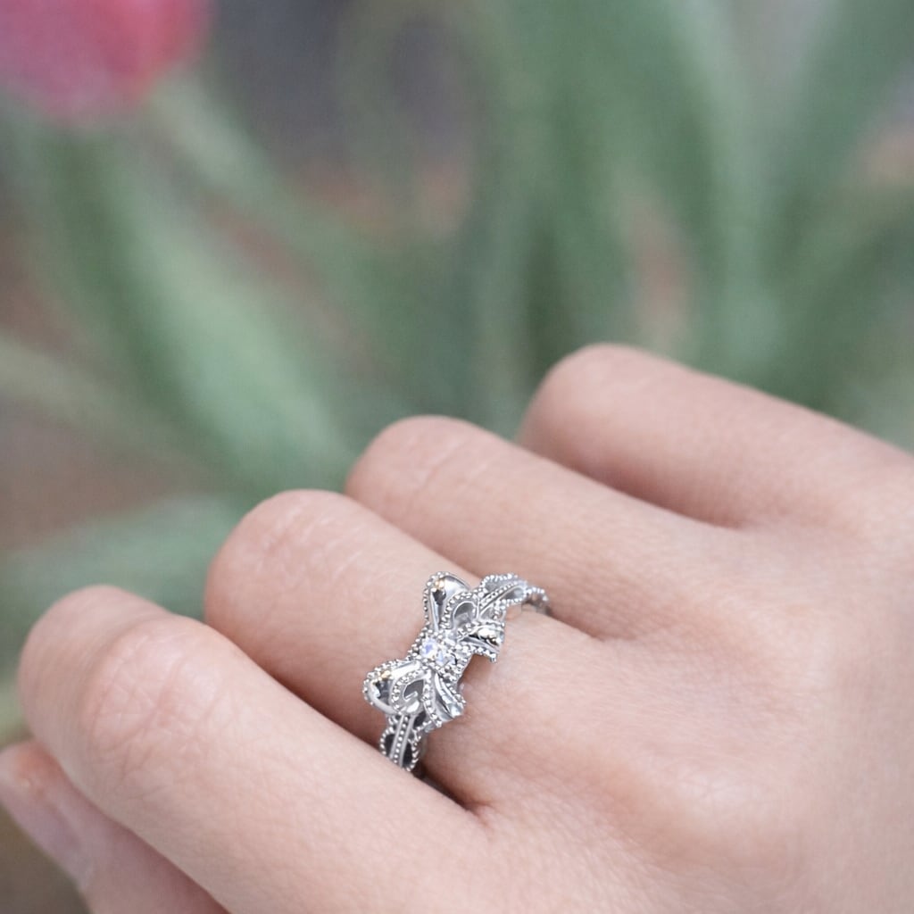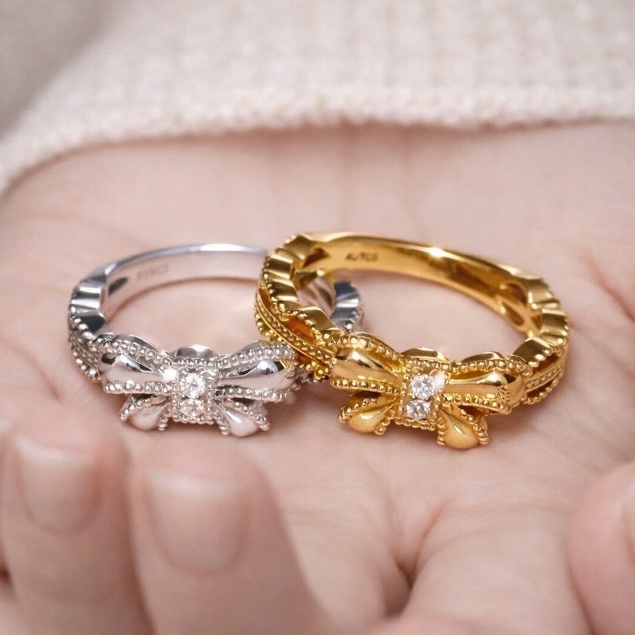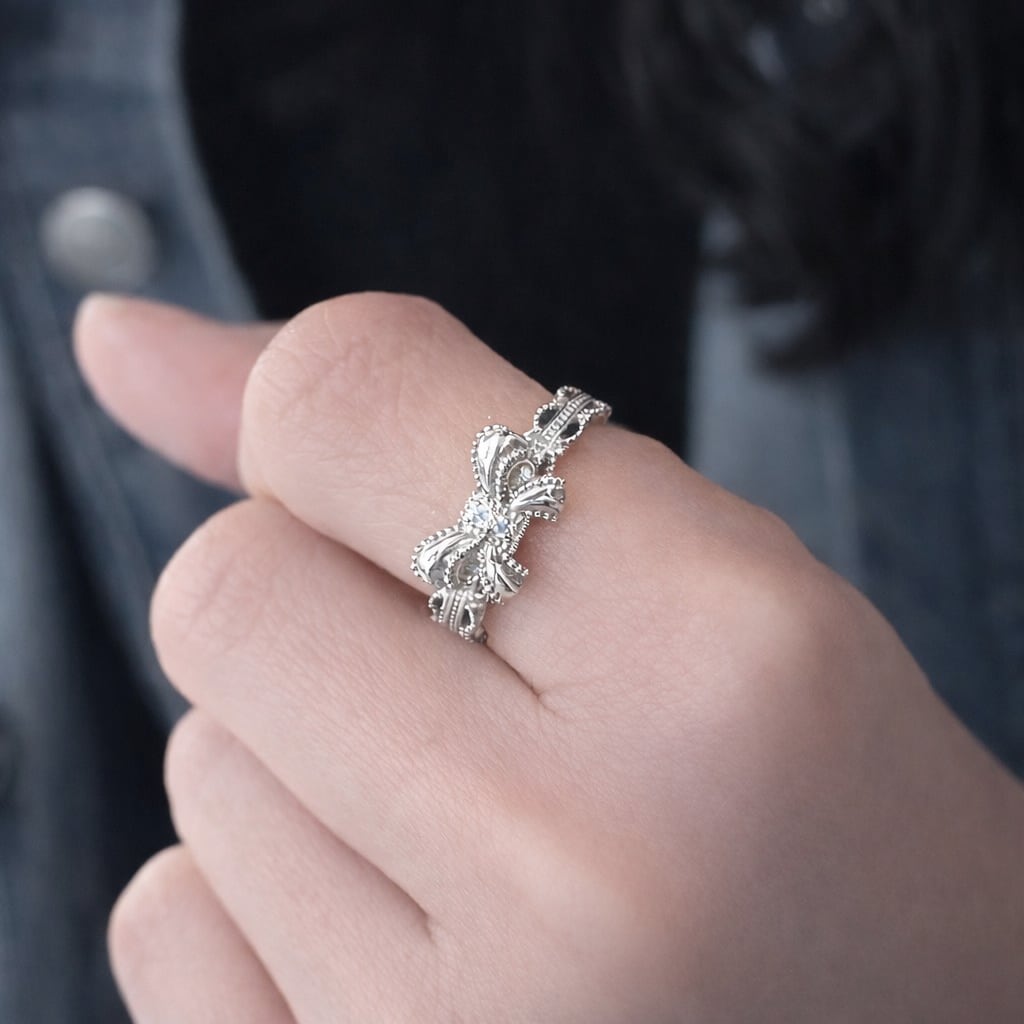 甘さを抑えた大人のリボンデザインに仕上げました。